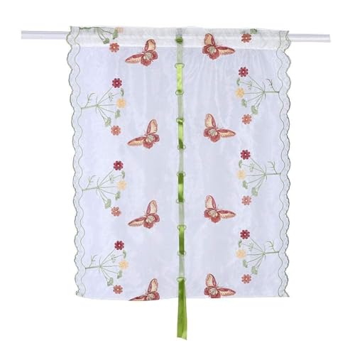 HERCHR 1 Pièce Rideau de Fenêtre Broderie Floral 80 x 200cm, Rideaux Transparents Blancs Rideau Voilage Broderie Papillon pour Balcon Cuisine Salon Chambre