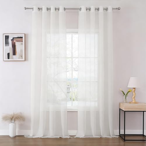 Joydeco Lot de 2 Rideaux Voilages Blancs 140 x 215 cm, Voilage Fenêtre Transparent à Oeillets pour Filtrage de Lumière et Décoration Intérieure de Salon Chambre Balcon