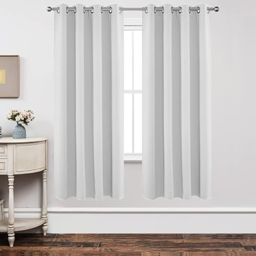 BGment Lot de 2 Rideaux occultants Blancs de 160 cm de Long pour Chambre à Coucher – Isolation Thermique avec œillets – 106,7 x 160 cm – Blanc Pur