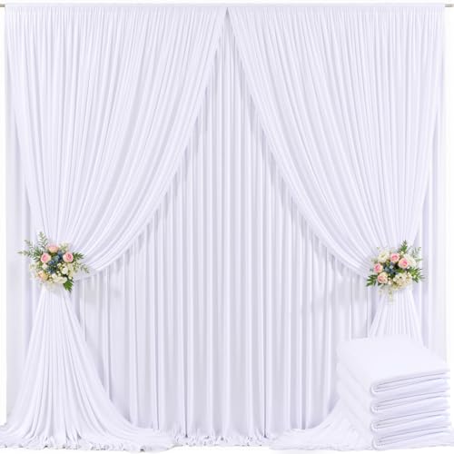 Lot de 4 Rideaux de Fond Blancs sans Plis pour fêtes, Mariages, 6,1 x 3 m, Rideaux pour fête prénatale, révélation du Sexe, Anniversaire, Photo, Photographie, décoration de Fond en Polyester
