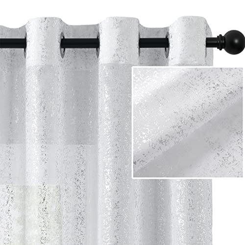 Lot de 2 Rideaux Terlytex Transparents Blancs argentés pour Chambre à Coucher - Rideaux Blancs Scintillants en Feuille d'argent métallique de 160 cm de Long - Rideaux Transparents à œillets, 132,1 x