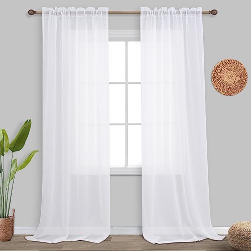 FMFUNCTEX Rideaux blancs semi-transparents en lin pour chambre à coucher, salon, panneaux de rideaux de fenêtre texturés en lin transparent de 160 cm de long, filtrant la lumière, 2 panneaux avec
