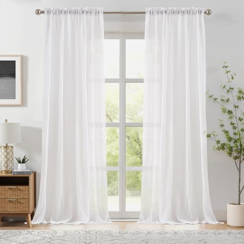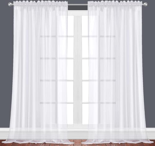 Rideaux transparents blancs de 228,6 cm de long, 2 panneaux, voilages semi-transparents avec passe-tringle pour cuisine, chambre à coucher et salon (blanc, 132,1 cm de large x 228,6 cm de long)