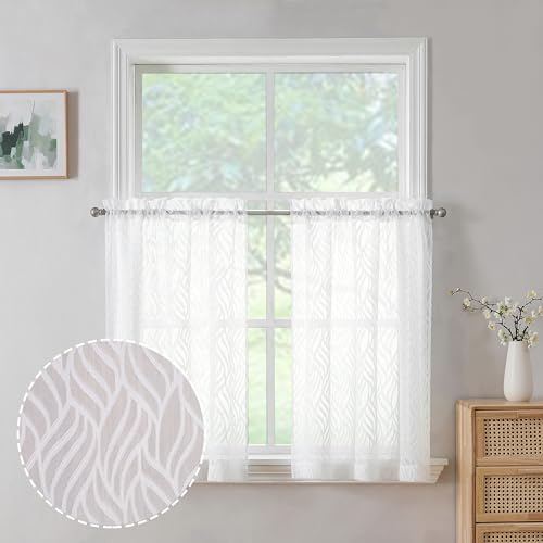 Chyhomenyc Marilyn – Lot de 2 Rideaux Transparents Courts Blancs de 91,4 cm de Long, filtrant la lumière, Doux et aérés avec Pinces à Feuilles 3D pour Chambre à Coucher, Salle de Bain, Petites