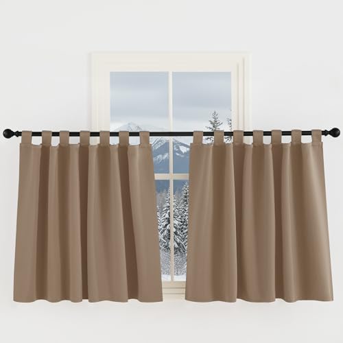 KGORGE Rideau Court Occultants Opaque, Lot de 2 Rideaux Brise-Bise Cuisine avec Pattes, Decoration Moderne Petite Fenetre Placrd Maison Chambre Enfants/Adultes, L140 x H90cm, Moka