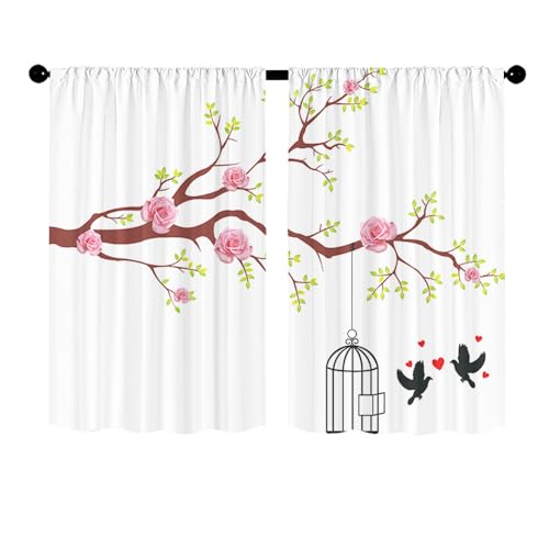 Odot Rideau de Cuisine Court, Rideaux Brise Bise Cuisine 2 Panneaux Rideaux Demi Fenetre Décoration de Maison pour Petie Fenetre Porte Chambre Salon Evier Bureau (Roses Roses,60x90cm)