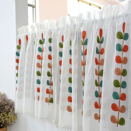 Odot Rideau de Cuisine Court, Désign de Gland Broderie Rideaux Brise Bise Cuisine 1 Panneaux avec Passe Tringle Rideaux Demi Fenetre Moderne Décoration de Maison (Feuille,145x45cm)