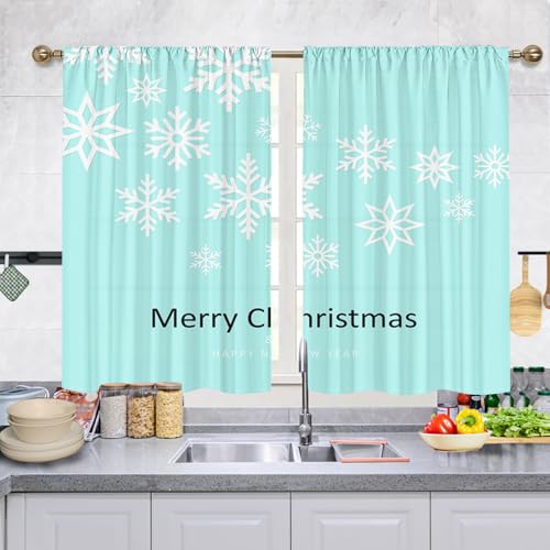 Odot 2 Panneaux Rideau de Cuisine Court, Noël en 3D Rideaux Brise Bise Cuisine Evier Rideaux Demi Fenetre Décoration de Maison pour Petie Fenetre Chambre Salon (Style 10,65x115cm)