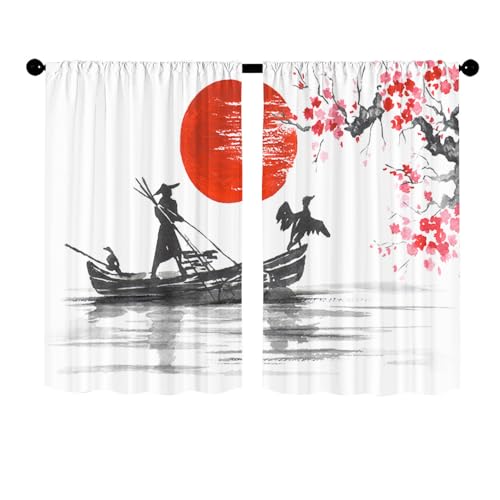 Odot Rideau de Cuisine Court, Rideaux Brise Bise Cuisine 2 Panneaux Rideaux Demi Fenetre Décoration de Maison pour Petie Fenetre Porte Chambre Salon Evier Bureau (Sakura,60x90cm)