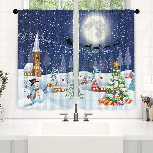 Odot 2 Panneaux Rideau de Cuisine Court, Style de Noël Rideaux Brise Bise Cuisine Evier Rideaux Demi Fenetre Décoration de Maison pour Petie Fenetre Chambre Salon (Nuit de Noël 9,60x60cm)