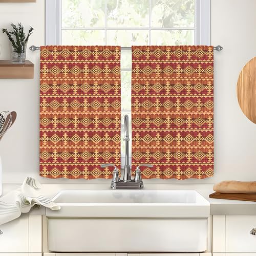 Odot 2 Panneaux Rideau de Cuisine Court, Motif Boho Rideaux Brise Bise Cuisine Evier Rideaux Demi Fenetre Décoration de Maison pour Petie Fenetre Chambre Salon (Marron,60x60cm)