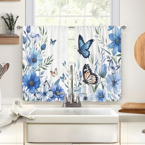 Odot 2 Panneaux Rideau de Cuisine Court, Impression 3D Rideaux Brise Bise Cuisine Evier Rideaux Demi Fenetre Décoration de Maison pour Petie Fenetre Chambre Salon (Papillon,65x60cm)