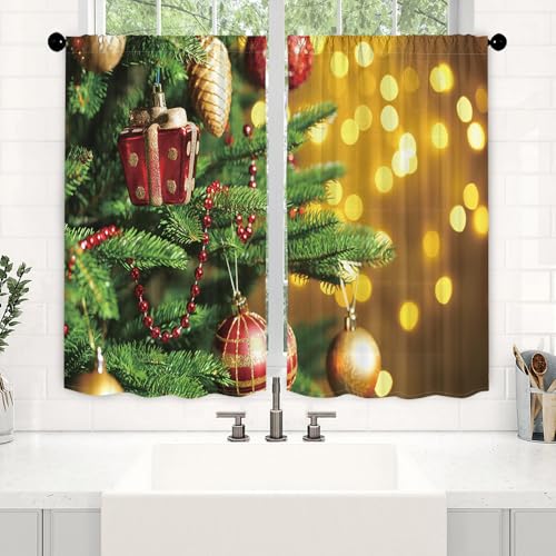 Odot Rideau de Cuisine Court, Rideaux Brise Bise Cuisine 2 Panneaux Rideaux Demi Fenetre Décoration de Maison pour Petie Fenetre Porte Chambre Salon Evier Bureau (Style de Noël A,90x45cm)