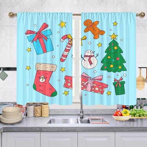 Odot Rideau de Cuisine Court, Rideaux Brise Bise Cuisine 2 Panneaux Rideaux Demi Fenetre Décoration de Maison pour Petie Fenetre Porte Chambre Salon Evier Bureau (Style de Noël D,60x90cm)