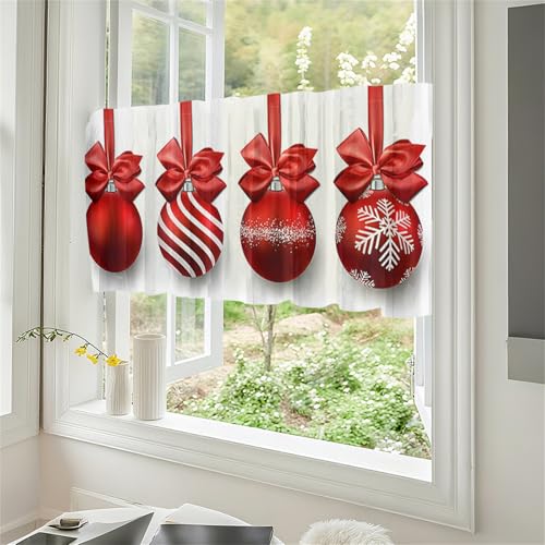 Odot Rideau de Cuisine Court Impression 3D de Noël, Non Rideaux Brise Bise Cuisine Demi Transparent, Rideaux Demi avec Passe Tringle, Décoration de Maison (Boule de Noël,L90xH45cm)