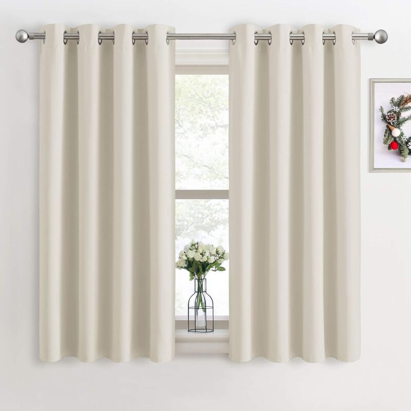 Décoration de Fenêtre - Rideaux Occultant Paire de Rideaux Solides Salon Lumières Bloquer pour Chambre/Tissu Souple Prêt-à-Poser pour Cuisine, 132 x