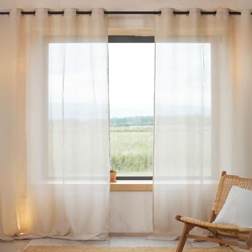 QABANE - Rideau Voilage 100% Lin Fluide - Transparent et Léger - Tamisant pour Fenêtres de Salon, Chambre, Cuisine - Prêt à Poser avec Ourlets - 140 x 260 cm - Naturel