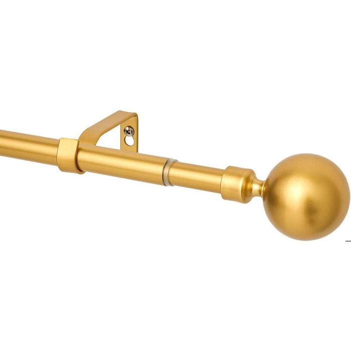 Tringle à rideaux avec tringles de 2,5 cm de diamètre, extensible de 77 à 140 cm, couleur dorée, avec embouts boules, supports de rideaux et kits de fixation. Facile à installer.