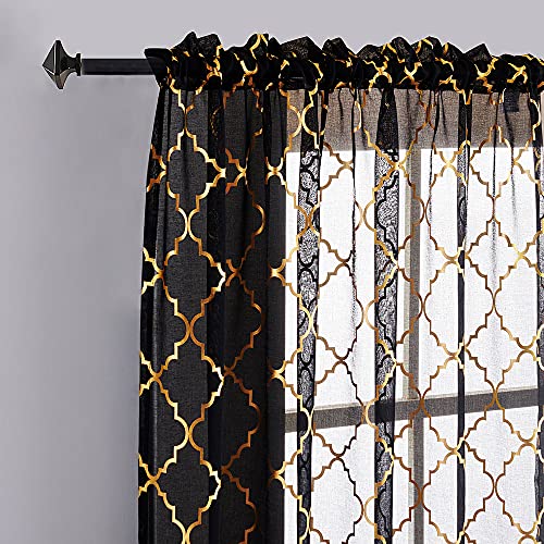 YJ Yanjun Rideaux Noirs et dorés de 213 cm de Long avec imprimé marocain en Feuille dorée métallisée pour Salon, Rideaux filtrant la lumière, 2 Panneaux, 132,1 x 213,4 cm