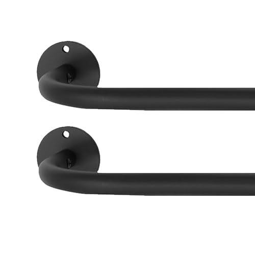 SAYAYO Support Tringle Rideaux Support Barre Penderie en Acier Inoxydable, Réglable Fixation Attache Tringle Rideau Dressing pour Tige de 25 à 28MM de Diamètre, 2 Pcs Noir Mat, EFL8001UB-2P