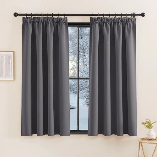 KGORGE Rideau Occultant Court - Lot de 2 Rideaux Opaque de Petite Fenetre, Galon Fronceur, Draperies Intérieurs Decoration pour Dressing Placard Maison Chambre Cuisine, L140xH160 cm, Gris