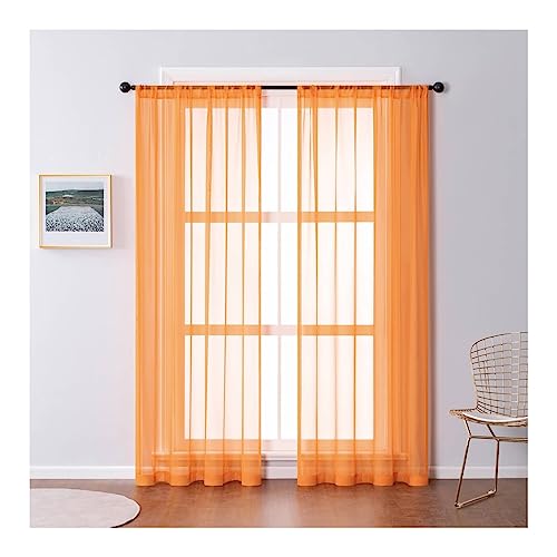 Mesnt Rideaux D'Intérieur, Rideau Transparent en Voile Semi-Transparent pour Chambre à Coucher pour Salon Chambre Séparation de Pièce pour Cuisine Rideau Dressing, Orange, 160 x 86 cm (HxL)