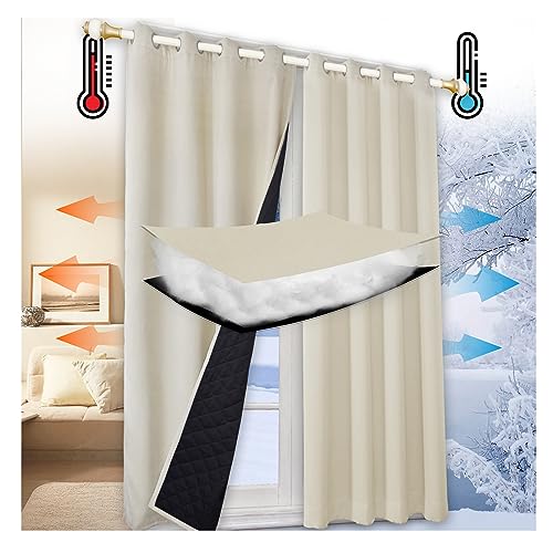 MRTREES Rideau Occultant 140x240 cm Thermique Isolant Anti Froid et Chaleur de Chambre Bloquer Lumière Rideaux Beige et Draperies Intérieurs à Oeillets pour Porte Fenetre Dressing Salon, 1 Pièce