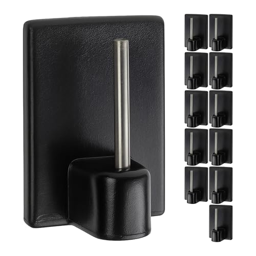 Crochet Rideau Autocollant, 12 x Noir, Taille 25 x 17 mm, Crochet Rideau, Crochet de fenêtre pour Rideaux en Filet, Crochet de fenêtre à extrémité Collante, Crochet à extrémité métallique