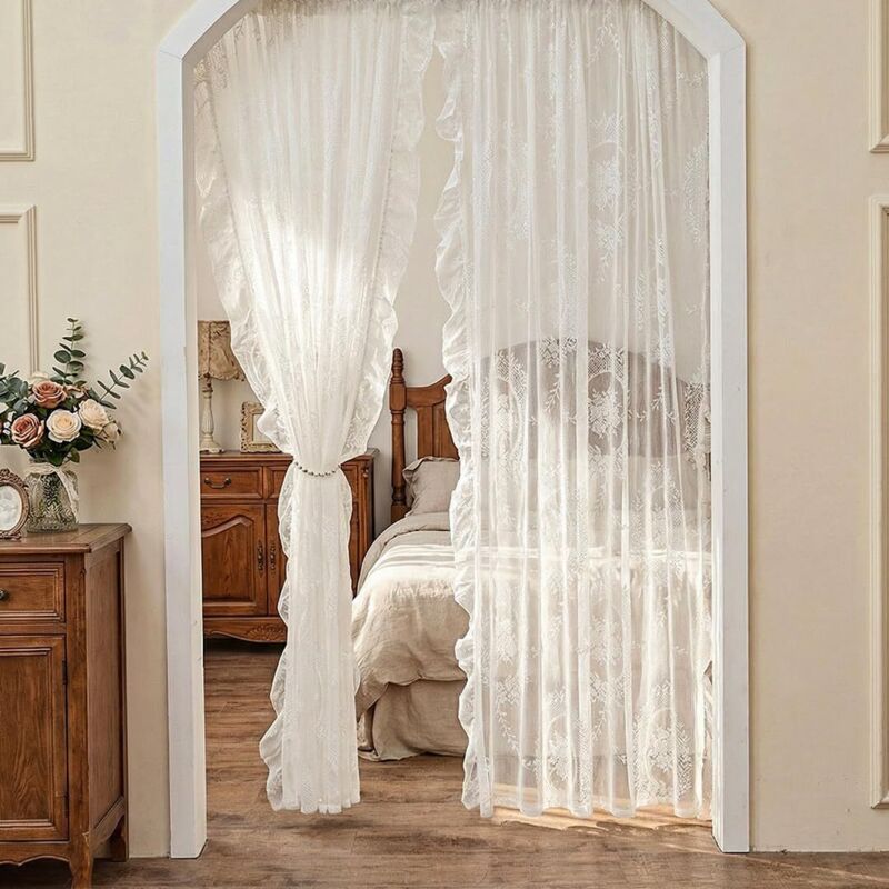 Rideaux en dentelle florale de style européen de ferme d'une seule pièce, rideaux en gaze de balcon de baie vitrée de chambre à coucher, 140x260cm