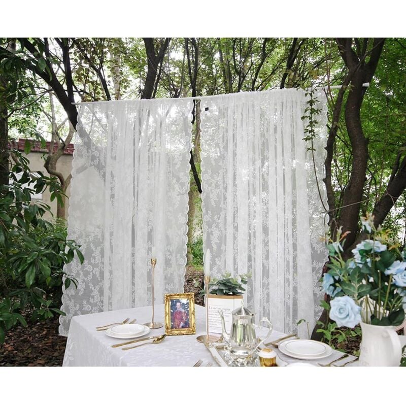 YJ Yanjun Lot de 2 Panneaux de Rideaux Transparents en Dentelle Florale avec Passe-Tringle pour Salon, 132 x 243,8 cm de Long, Blanc