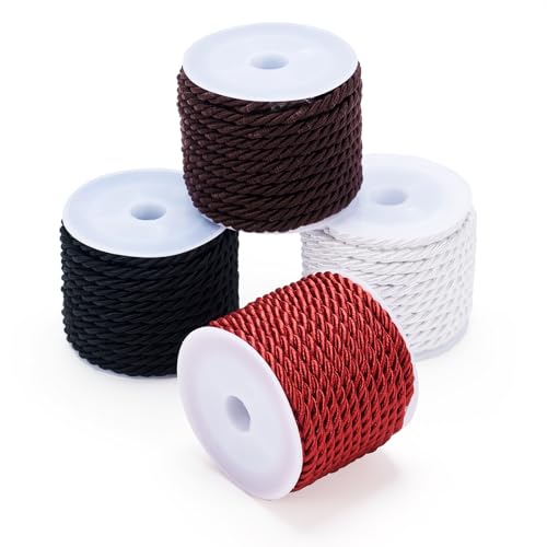 Spritewelry Lot de 4 rouleaux de cordons torsadés en polyester tressé de 3 mm pour travaux manuels, macramé, corde décorative pour rideaux, embrasses à suspendre - Cordons de serrage - Noir et rouge