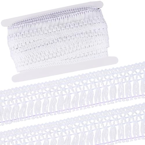 GORGECRAFT 10 Yard X 40mm Bordure en Coton Blanc à Pompons Ruban à Franges en Fibre de Macramé Bordure en Dentelle pour Couture Vêtements Rideaux Couvertures Embellissements pour la Maison