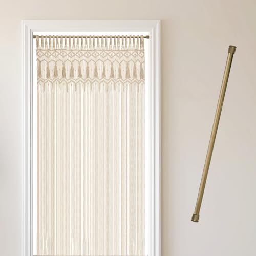 Cozyor Rideau en macramé + Tringle à Rideaux 70-120 cm sans perçage - 132 x 200 cm - Séparateur de pièce - Décoration Murale et bohème - Beige doré - pour Mariage, Salon