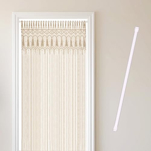 Cozyor Rideau de Porte en macramé Boho + Tringle à Rideaux - 70 à 120 cm - sans perçage - 132 x 200 cm - Séparateur de pièce - Décoration Murale et décoration - Beige et Blanc - pour Mariage, Chambre