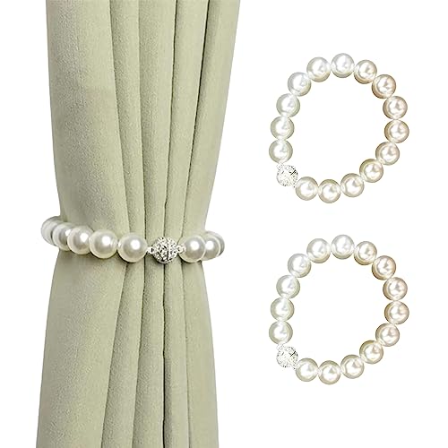 Lot de 2 embrasses de rideaux magnétiques avec clip de cordon pour rideau, clips de rideaux à clips pour rideaux, embrasses décoratives en perles synthétiques pour la maison, le bureau, l'hôtel (40