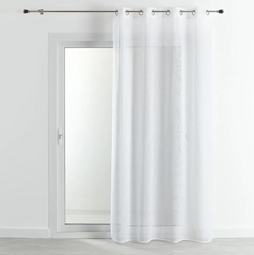 QABANE - Voilage Effet Lin Chiné - Polyester - Transparent Tamisant - Prêt à Poser avec Oeillets Argent - Voilage Rideaux Fenêtre Salon Chambre - 140 x 180 cm - Blanc