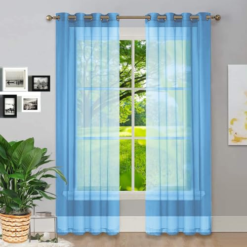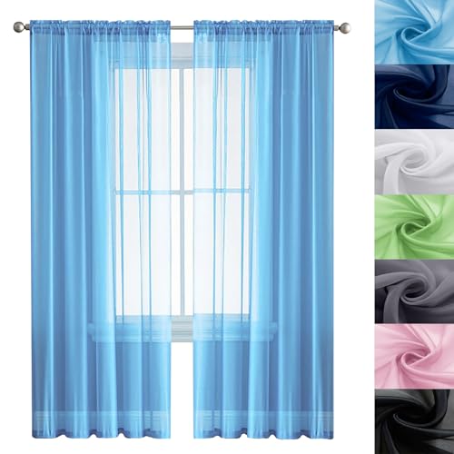 GAIFNAG Rideaux Balcon Fenêtre Cuisine 60 x 140 cm 100% Polyester/Transparent Intérieurs Rideau Occultant Blanc de Cuisine pour Mariage de Noël Chambre, Bleu Ciel