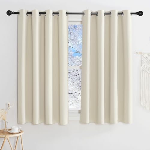 KGORGE Rideaux Thermiques - Rideaux Occultant Isolation à Froid/Chaleur pour Lit Armoires Chambre, Rideaux de Fenêtre Rideaux de Cuisine, Lot de 2 Rideau, 90x90cm, Beige Clair