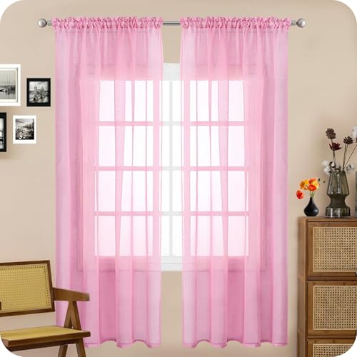 GAIFNAG Rideaux Balcon Fenêtre Cuisine 200 x 80 cm 100% Polyester/Transparent Intérieurs Rideaux et Draperies Intérieurs Décoratif pour Mariage de Noël Chambre, Rose