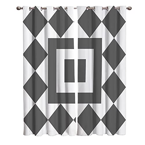 Rideau Occultant 3D Impression Grille De Mosaïque Géométrique Simple Gris 220X215Cm (LxH) Rideaux Salon Moderne Thermique Isolant Anti Froid Polyester 2 Pièces Rideaux De Fenêtre Chambre Cuisine Déco
