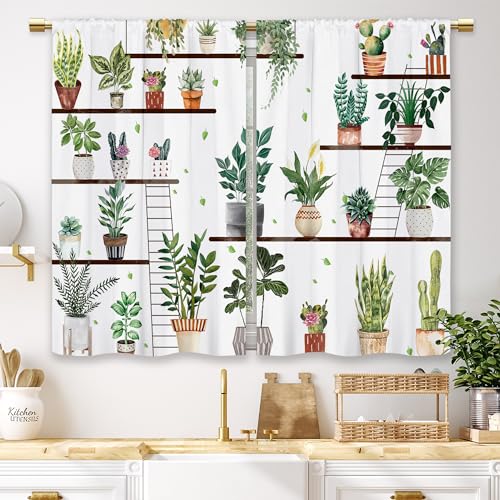 Laifzere Lot de 2 Rideaux Courts de Style bohème à Motif Floral, Fleur, Plante Verte, Cactus, Cottage, Campagne – Rideaux de fenêtre de Cuisine (69,9 x 99,1 cm)
