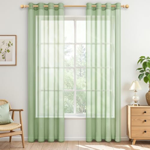 MRTREES Rideau Voilage 140x240 CM, Vert Sauge Transparent à Oeillets, 2 Pièces, Voilage Chambre Enfant Salon Moderne, Rideaux Intérieurs pour Fenêtre Cuisine Salle à Manger Élégants