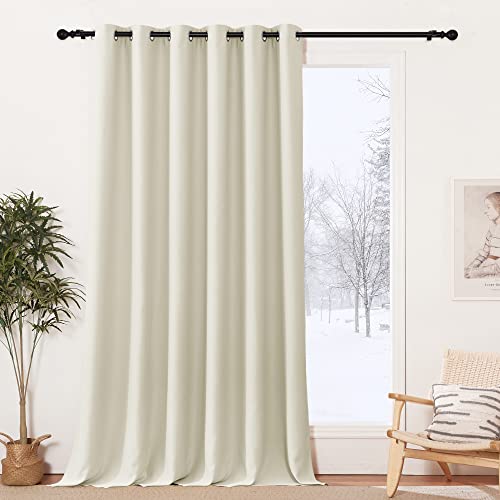 PONY DANCE Rideau Salon de Fenêtre - Rideaux Grande Largeur Lourd Décoration de Fenêtre pour Chambre, Isolation Lumineux & Chaleur, Largeur 200 x Hauteur 245cm, Beige Clair, 1 PC