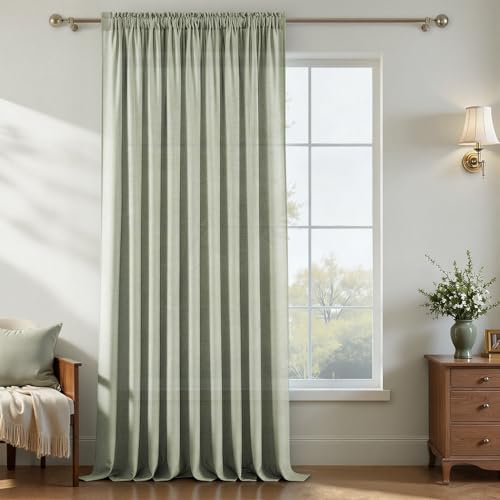 MRTREES 1 Pièce Rideaux Voilage Vert Sauge en Lin Semi-Transparent Grande Largeur 300x240cm Voilages Intérieurs Rideau Voile à Oeillets pour Porte Fenetre Salon Chambre Cuisine Salle a Manger