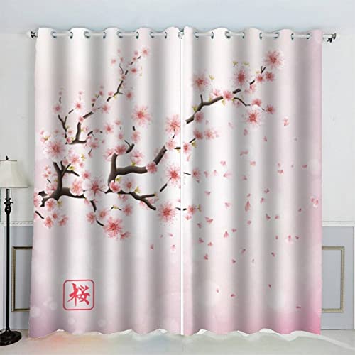 Oeillet Rideau Fleurs De Cerisier Japonais Rideaux Salon Moderne Lot De 2 Fleur Rose Rideaux Anti Bruit Occultant Grande Largeur Polyester 3D Rideaux Thermiques Isolants (140x250)