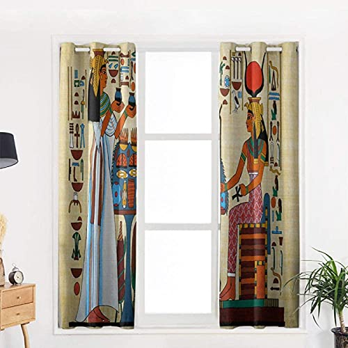 CLZLH Rideaux Et Draperies Intérieurs À Oeillets 3D Marron Egypte Vintage Reine Rideau Occultant Thermiques Isolants Anti Froid pour Chambre Rideaux Grande Largeur 132X214Cm(L X H ) 2 Pièces