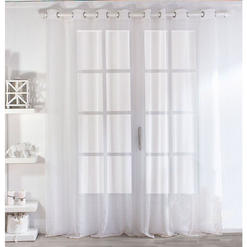 Rideaux voilage grande largeur transparents avec œillets –1 Panneau Blanc- Largeur 200 cm – Hauteur 180 à 280 cm – Rideaux de séjour salon chambre – Art solide (A – 200 x 280 cm)