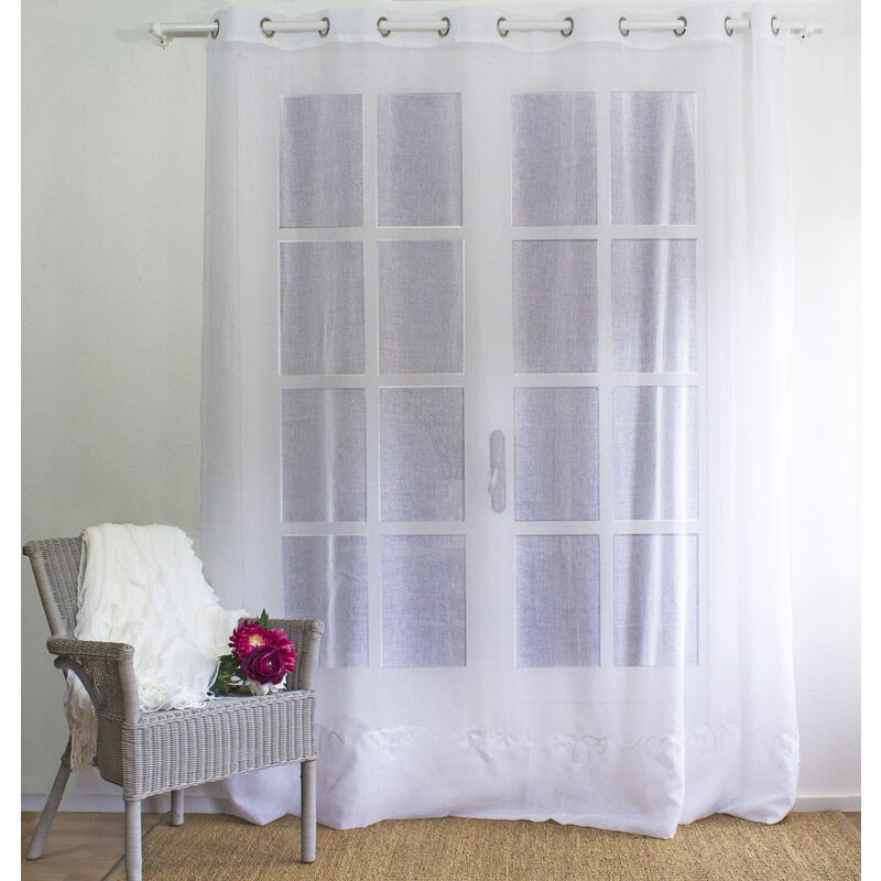 Voilage grande largeur 300x240 brodé cornelly voile sablé blanc