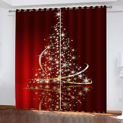 MAYNUO Rideaux Occultants 140x240 Cm Rideaux Occultants Isolant Thermiques À Oeillets Élégant Décoration pour Chambre Salon 3D Arbre De Noël Doré Thermique Anti Froid, Lot De 2 Rideaux Motif