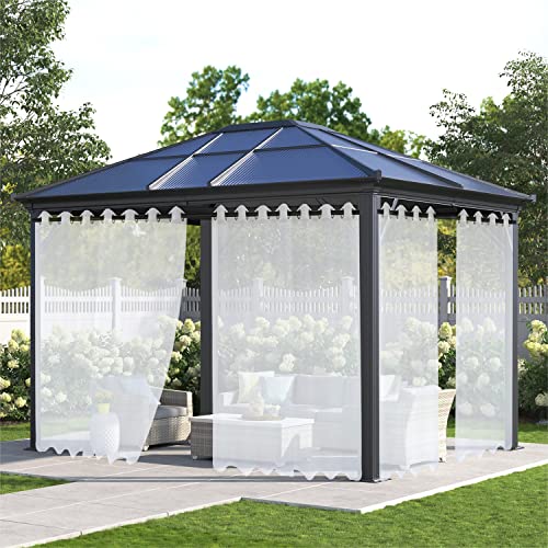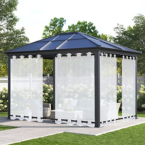 XUIAQZW Voilage Blanc Rideaux, Rideau Occultant Isolant Thermiques pour Pergola 200x260(BxH) cm Cabanon Jardin Exterieur, Gazebo, Porche Terrasse Pavillon (2 Panneaux)